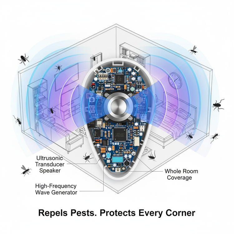 The device uses an internal electronic circuit to generate high-frequency ultrasonic waves. These frequencies disrupt pests’ normal behavior and communication, making the area unsuitable for them to remain in.