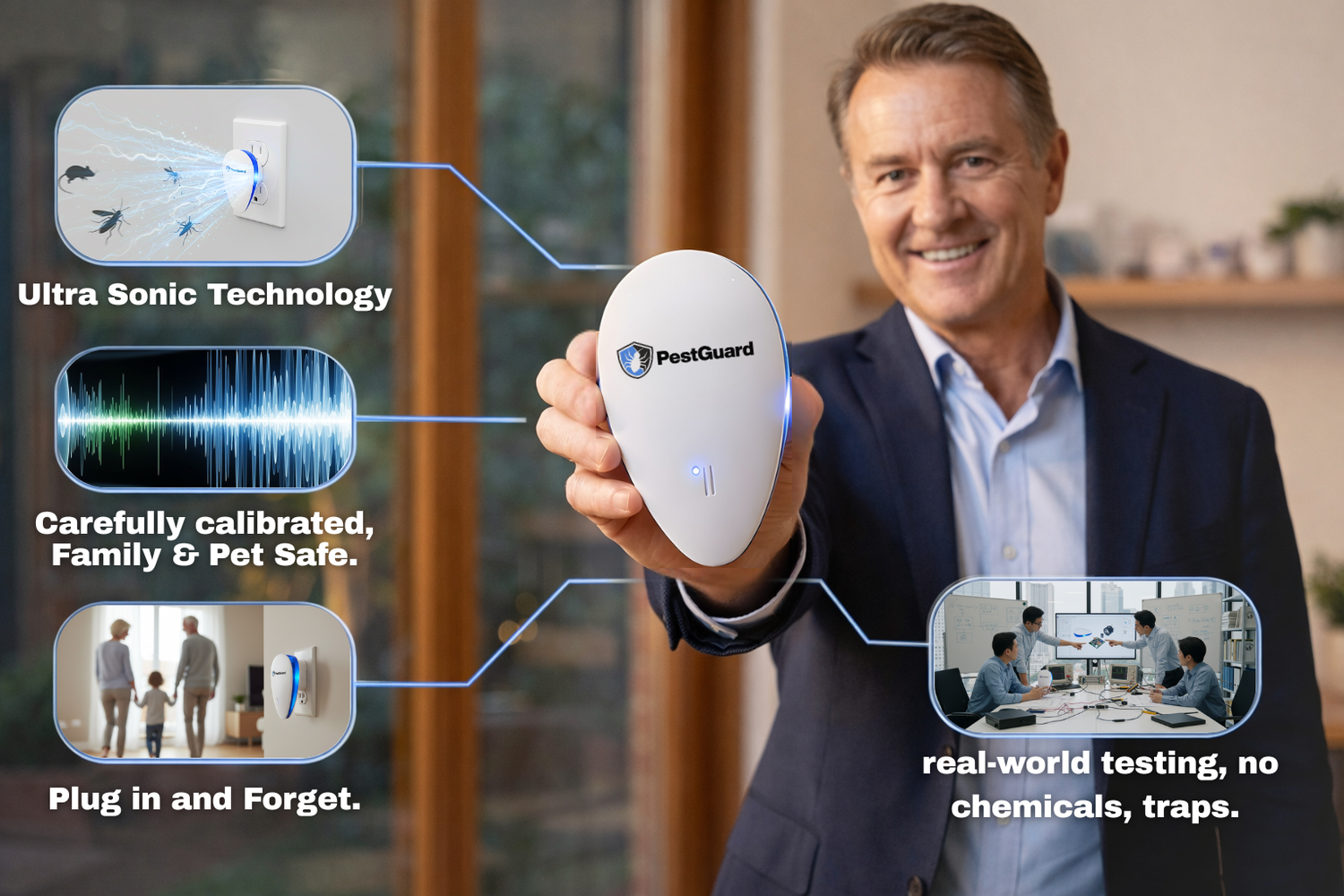 By emitting carefully calibrated ultrasonic frequencies around the clock, PestGuard interferes with those signals, making the space uncomfortable for pests while remaining silent to humans.